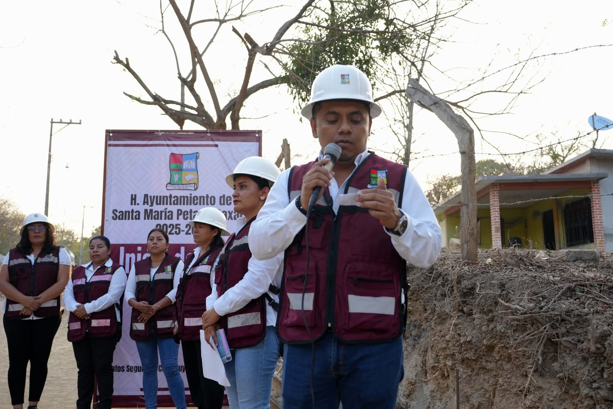 SANTA MARÍA PETAPA.- El Lic. Tereso Martinez Garcia, Presidente Municipal de Santa María Petapa, acompañado de los regidores, agentes municipales, realiza el banderazo de inicio de obra: «Construcción de pavimento con concreto hidráulico de la calle principal en la comunidad de El Paraíso. “Esta obra de pavimento hidráulico consiste en la construcción de una superficie de rodamiento de la calle principal en la comunidad de El Paraíso, que se edificará con un material que endurece al entrar en contacto con el agua, a diferencia del asfalto que es derivado del…