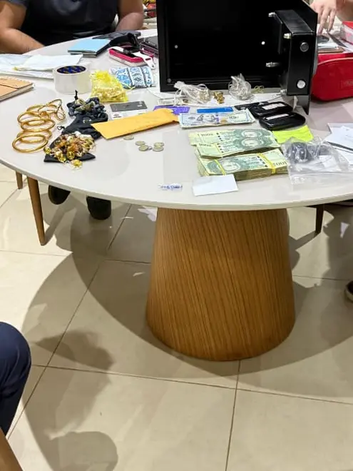 Las fotografías del decomiso revelan una escena que mezcla lujo, dinero y cotidianeidad. Sobre la mesa de la sala, los agentes colocaron fajos de billetes de 100 dólares y de guaraníes paraguayos, junto con monedas mexicanas. A un costado reposaban tarjetas bancarias, identificaciones y sobres amarillos con inscripciones manuscritas.
