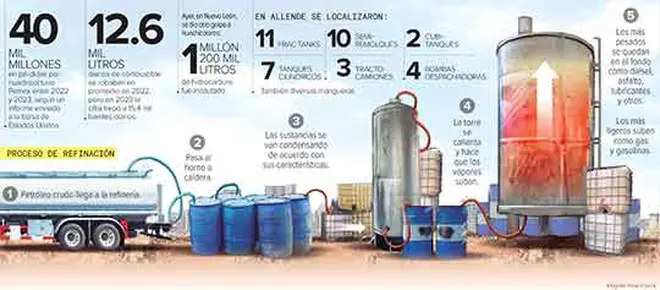 “Los cárteles y sus huachicoleros obtienen petróleo crudo sobornando a empleados de Pemex y a funcionarios de gobiernos locales, aunque pueden emplear otras tácticas para robar petróleo, como perforar ilegalmente oleoductos, robar en refinerías y amenazar a los empleados de Pemex”, señala en un informe.